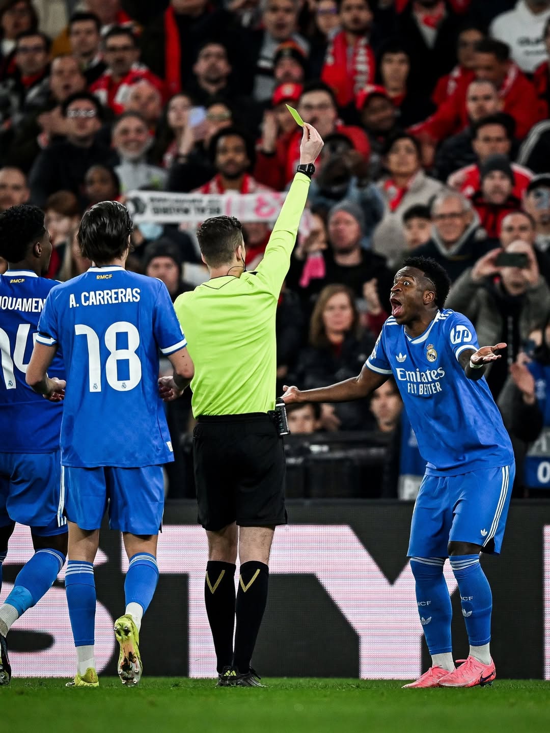 Uyu munya-Brésil yahawe ikarita y'umuhondo kubera uburyo yishimiyemo agakabya, biza kuvamo gushyamirana n'umukinnyi wa Benfica, Gianluca Prestianni.