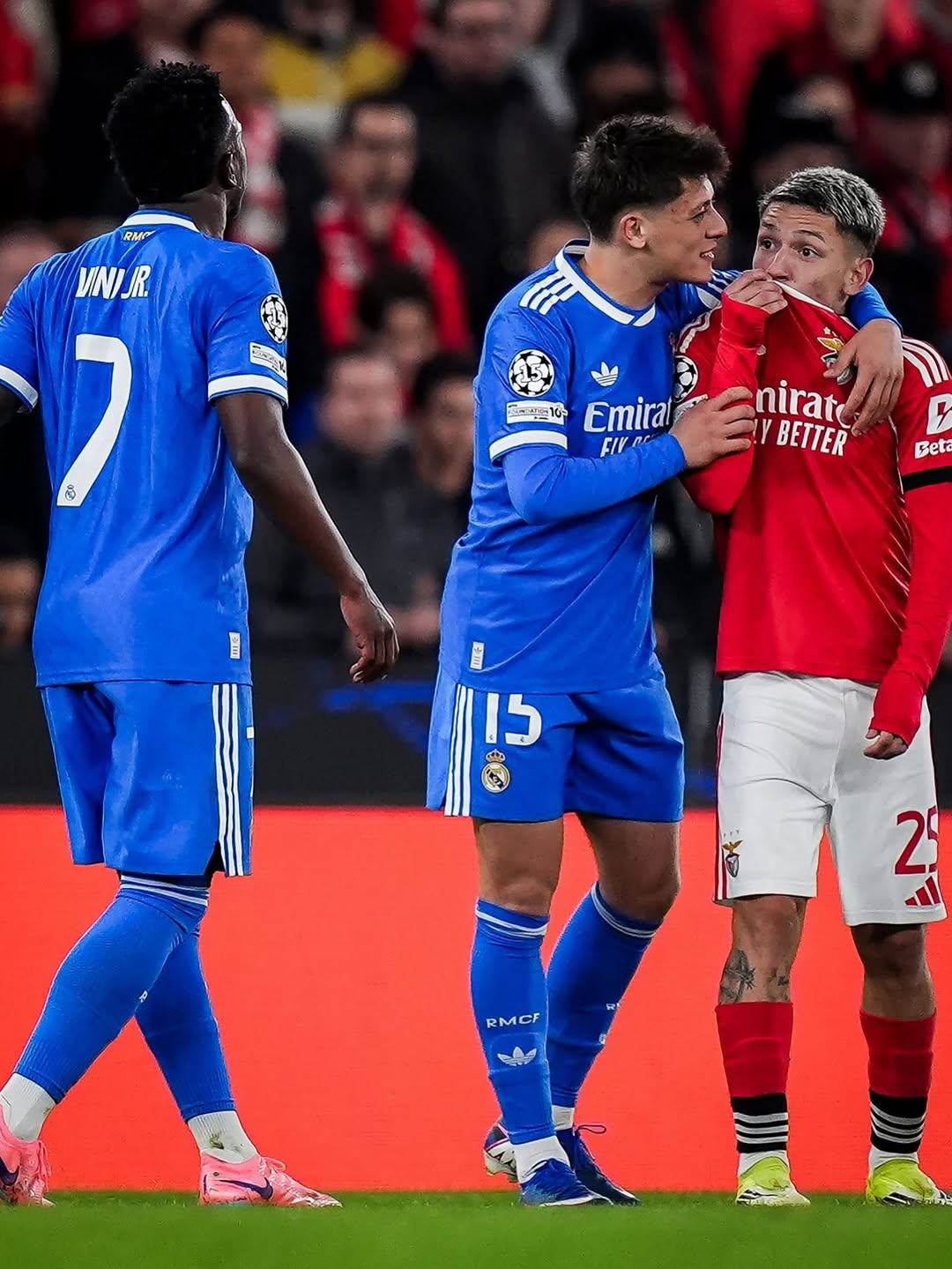 Uyu munya-Brésil yahawe ikarita y'umuhondo kubera uburyo yishimiyemo agakabya, biza kuvamo gushyamirana n'umukinnyi wa Benfica, Gianluca Prestianni.